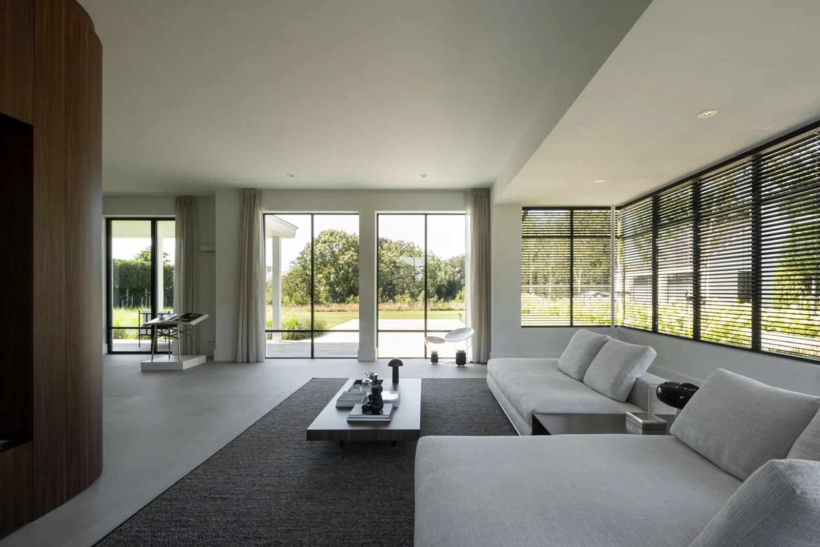 Voor deze stijlvolle woning mochten wij de raamdecoratie en gordijnoplossingen verzorgen. Het resultaat is een harmonieus geheel dat perfect aansluit bij de architectuur en het ingetogen interieur.